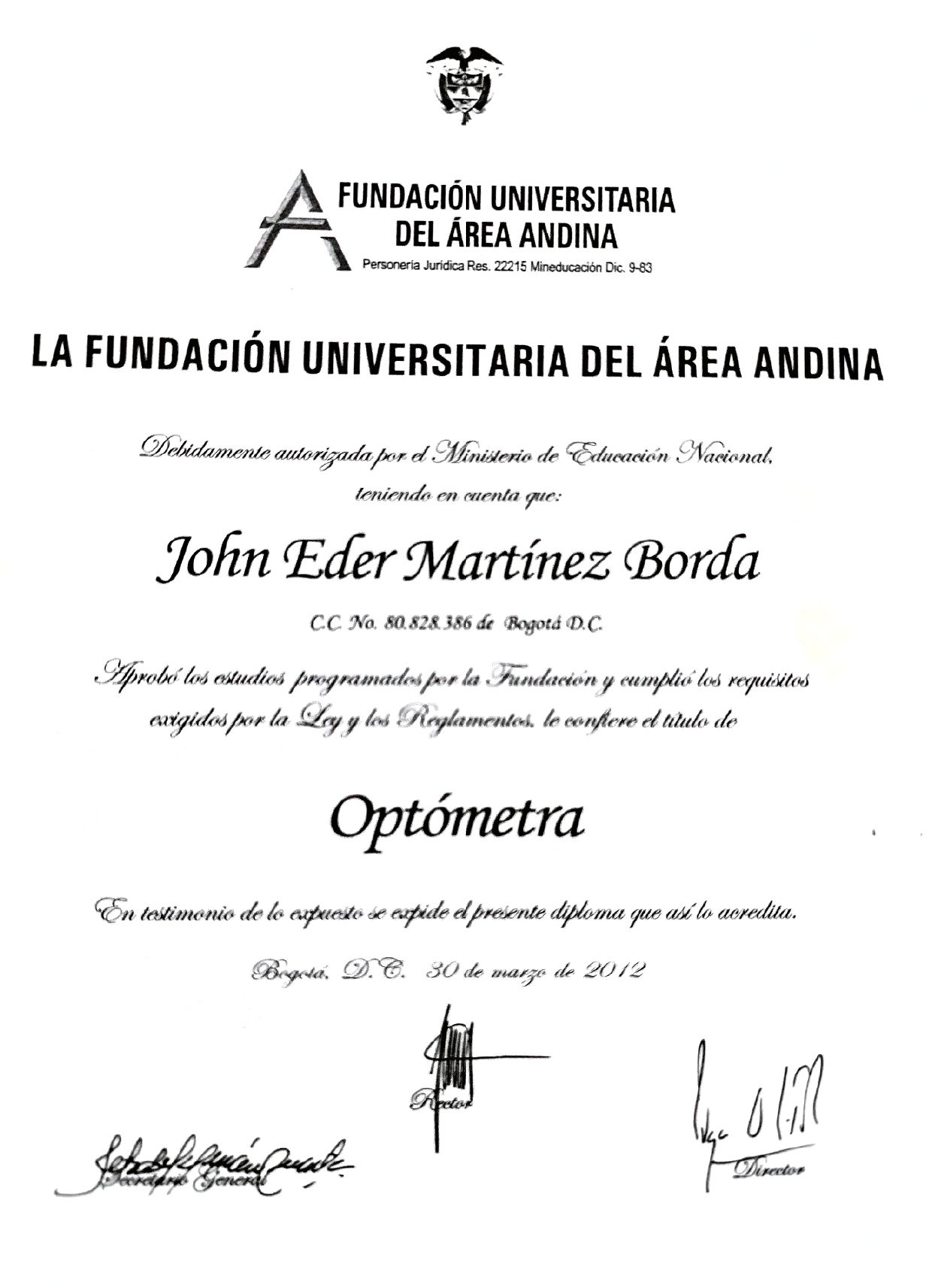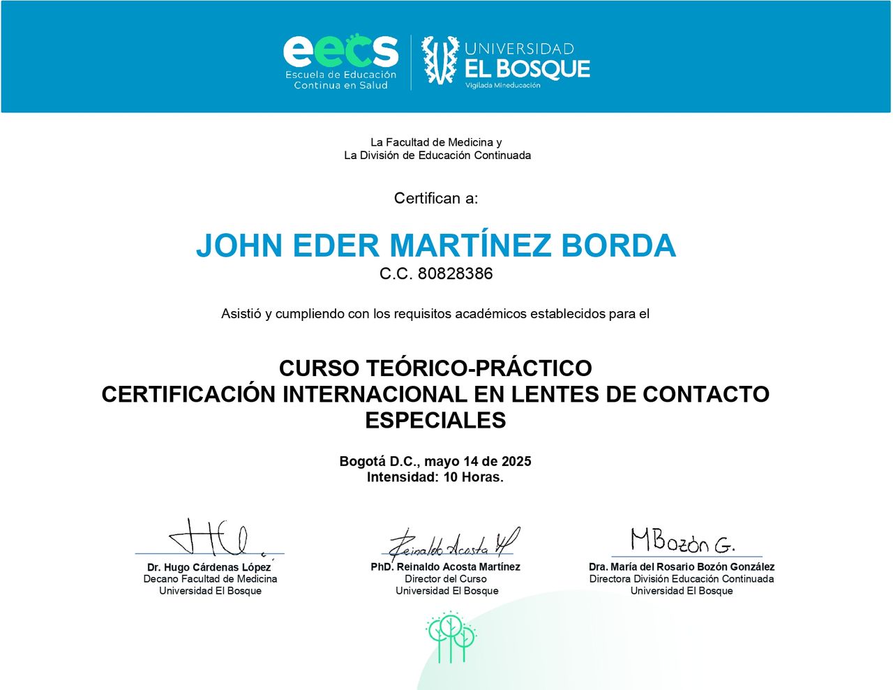 Optómetra con 13 años de experiencia y altos conocimientos en cuidado primario ocular y patologías de segmento anterior, extracción de cuerpos extraños oculares, tratamiento y rehabilitación de las mismas. Manejo de alteraciones visuales como astigmatismo regular e irregular (queratocono y ectasias, corneales), hipermetropía, presbicia, miopía y control de la misma por medio de alternativas de última tecnología, incluidos lentes de contacto (rígidos, blandos, híbridos y esclerales), anteojos con tecnología de inteligencia artificial. Todo esto logrado con equipos de tecnología de vanguardia los cuales se encuentran en nuestro consultorio.